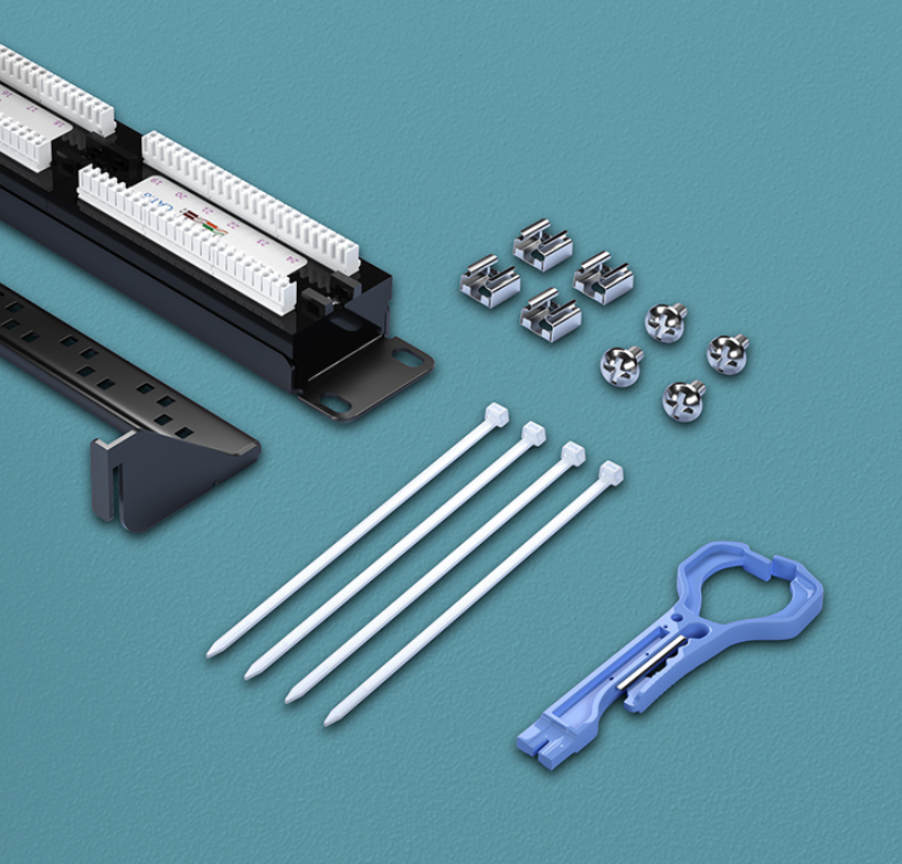 配线架用途主要是对前端信息点(电脑等)进行管理的模块化设备。配线架前端和交换机使用网络跳线连接,将已布置好的网线(预埋线:连接到网络插座的网线)一端压接到配线架后端(打线端),网线另一端压接到网络模块。