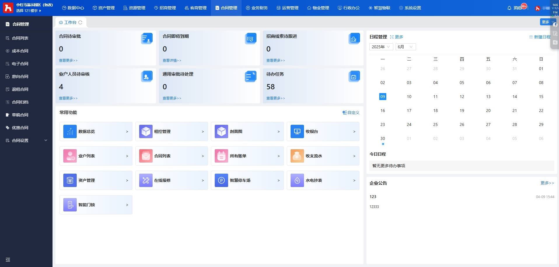 小红马智慧楼宇系统通过集成物联网、大数据和AI技术,实现了对商业写字楼、住宅小区以及工业园区等多业态场景的智能化管理。系统能够实时监控楼宇的能耗、设备运行状态和环境质量,并自动调节空调和照明设备,以此来降低运营成本。除此之外,该系统还支持租赁管理、财务管理、访客预约和工单派发等全流程数字化操作。这种全面的数字化流程不仅提升了管理效率,还增加了租户的满意度。更为重要的是,小红马智慧楼宇系统的“多业态兼容”与“跨项目统一管理”优势,使得无论是单栋建筑还是全国范围内的分散资产,均能通过一套系统实现数据互联与智能决策,进而有效提升整体运营效率。